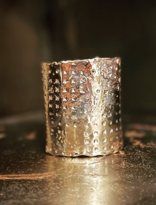 Bracciale rigido realizzato a mano con la tecnica della cera persa in fusione di bronzo rosa.