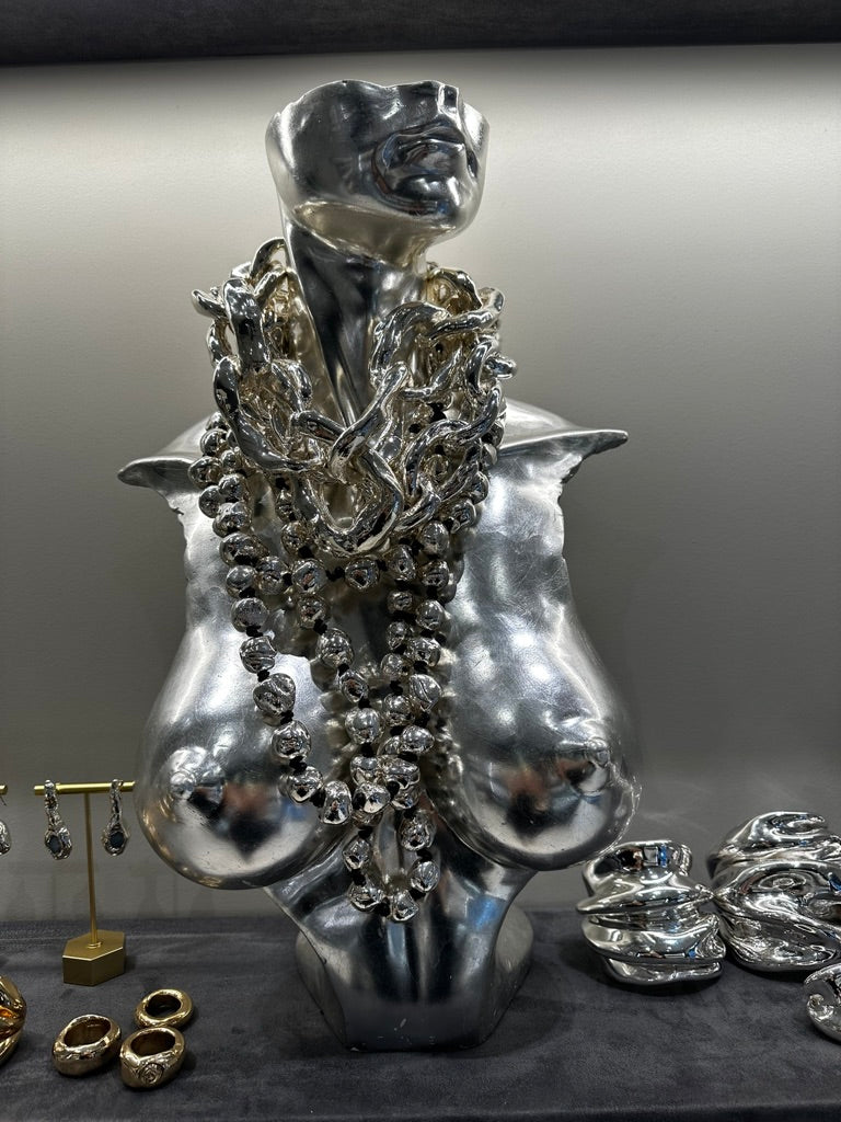 I gioielli in resina argentata a spessore sono pezzi unici, lavorati completamente a mano in maniera artigianale, in tutte le fasi di produzione. La resina viene forgiata a mano da Camilla Michelotti, dalle cui mani prende forma in maniera quasi autonoma: Il progetto è sommario, c’è un’idea approssimativa del risultato che si intende raggiungere.. il resto è caso.